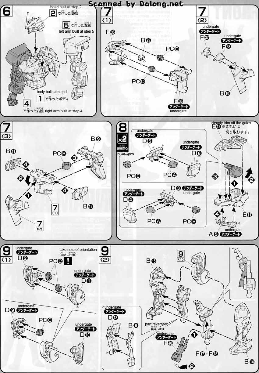 Color Guide & Construction Manual for the 1/100 Gundam Astray Green Frame was translated to English from the manual posted at Dalong.