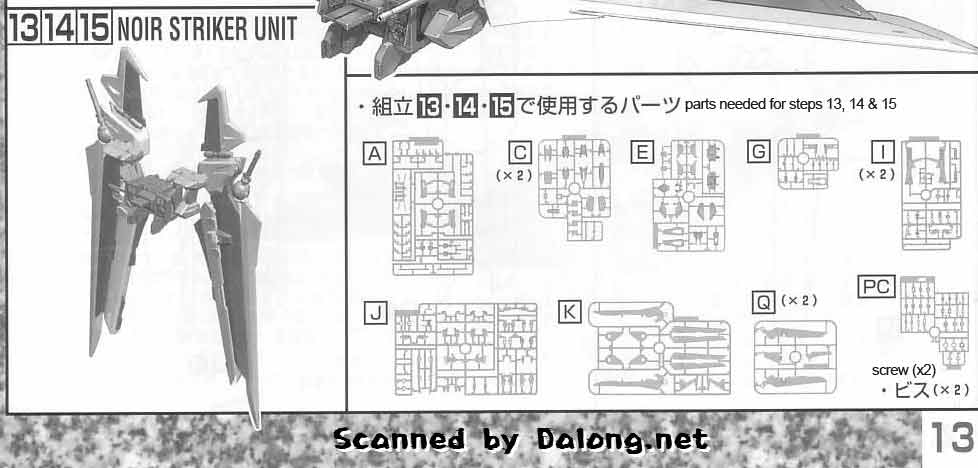 Translated Color Guide for the GATX-105E Strike Noir Gundam can be found here. The Manual of the Strike Noir Gundam was translated to English from the Japanese manual posted at Dalong.