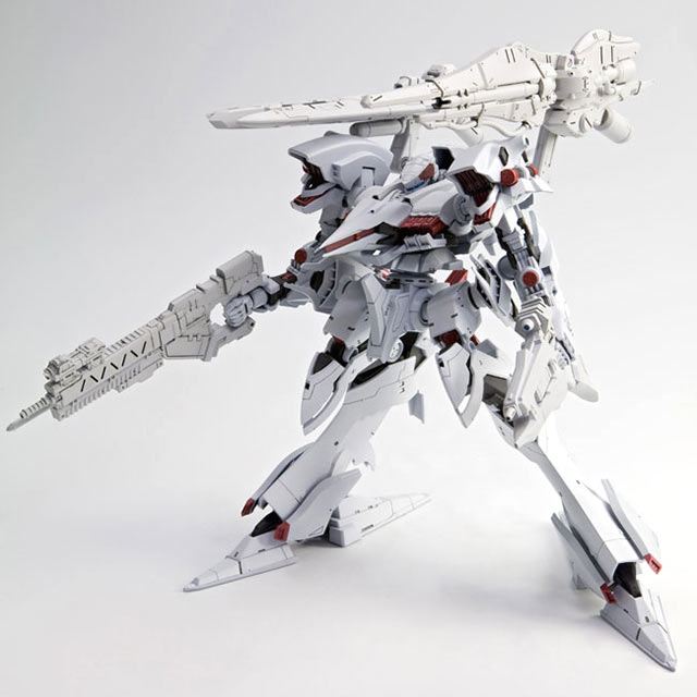 Released in September of last year by Kotobukiya was the 1/72 Rayleonard 04-Alicia White Pearl Version. This impressive mecha comes from the very popular Armored Core video game that was made into a very comprehensive 1/72 line of model kits by Kotobukiya.
