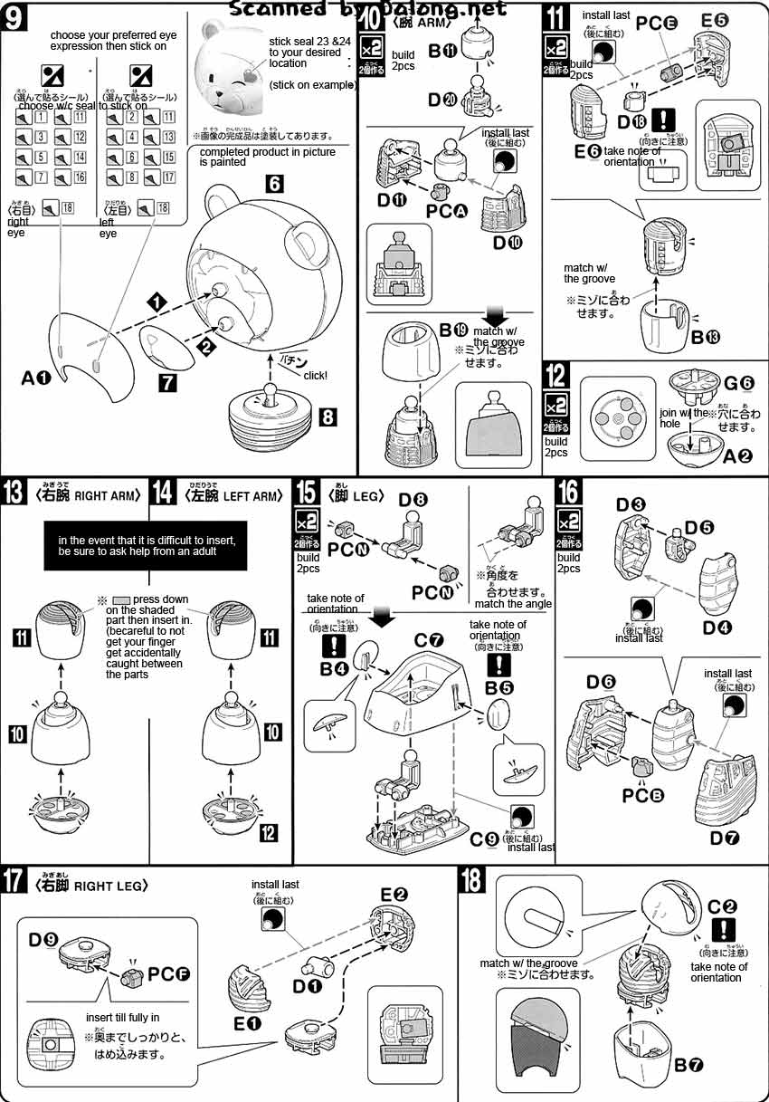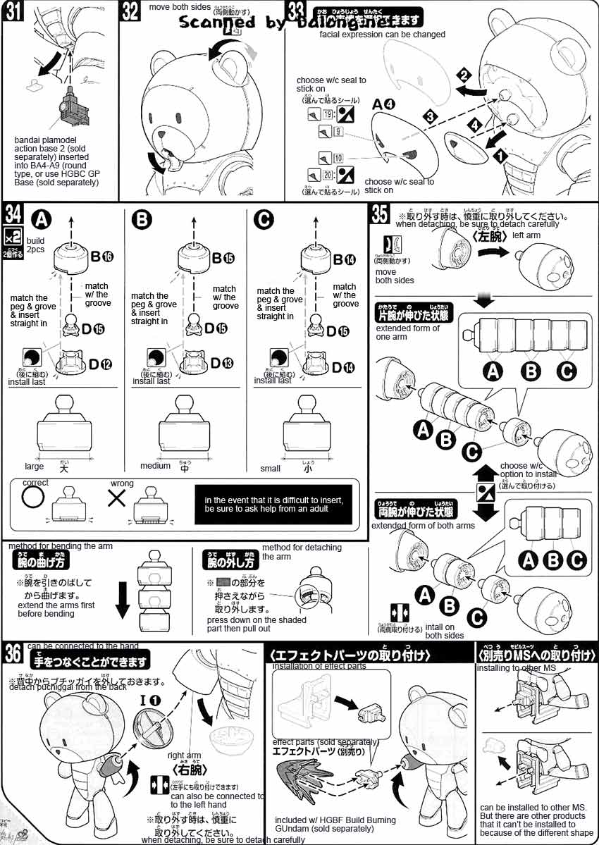 Construction Manual & Color Guide for the 1/144 High Grade Beargguy F (family) was translated to English from the Japanese Manual posted at Dalong's Gunpla & Model Kit Review site. For the meaning of the symbols found in the model kit's manual kindly refer to this post.